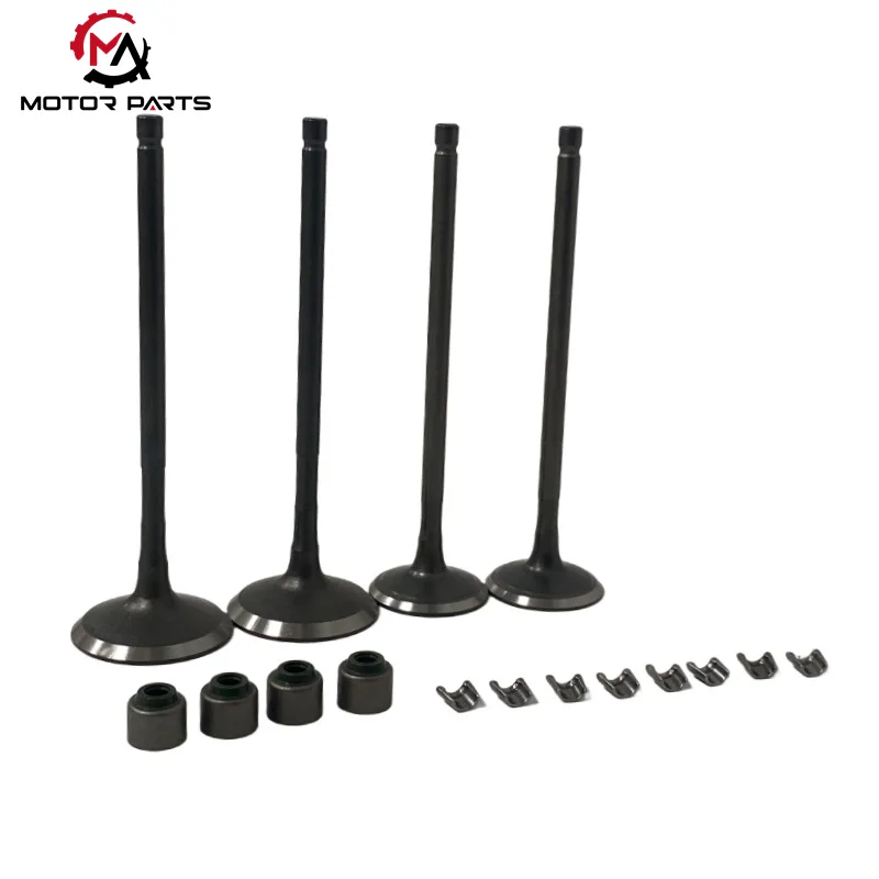 Inntaksventiler: Laget av rustfritt stål med høy styrke, som kombinerer utmerket korrosjonsbestandighet og motstand mot høye temperaturer. De tåler høytemperaturmiljøet på 800-1000 ℃ inne i motoren og har god seighet, forhindrer deformasjon eller brudd forårsaket av langvarig høyfrekvent bevegelse, og sikrer en jevn og uhindret inntakskanal i lang tid.