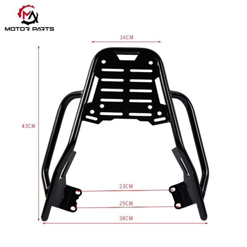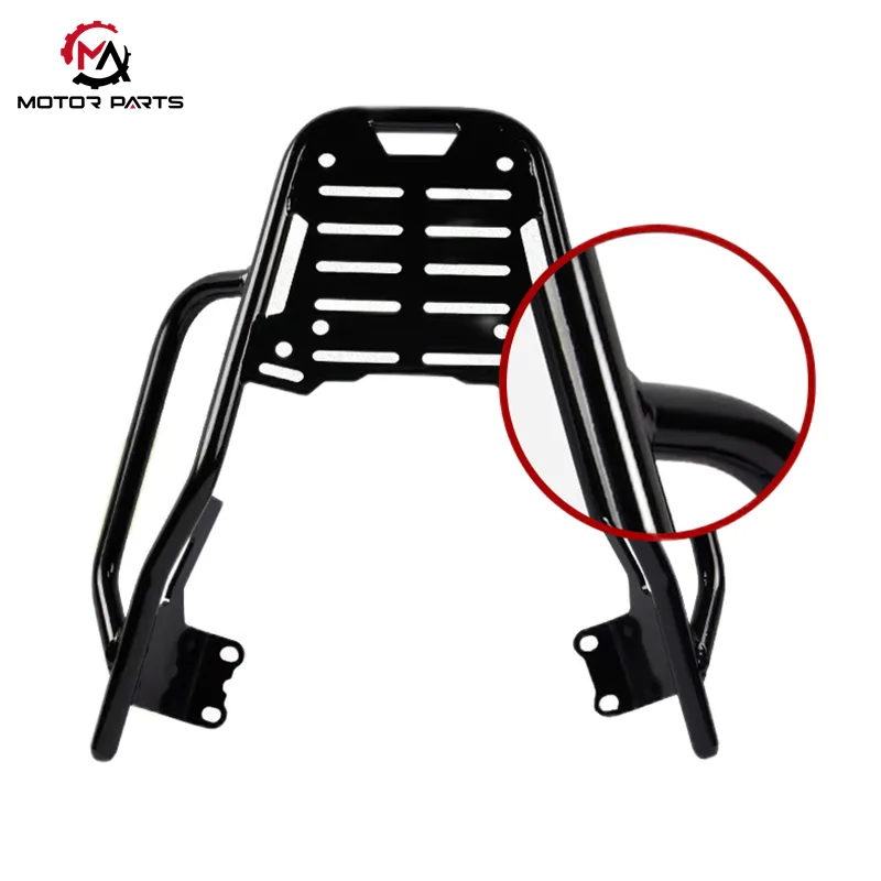 Yamaha 125 bagasjebærer bak er bygget av høyfast stål, og tilbyr en solid og spenstig struktur designet for langvarig bruk. Den er konstruert for pålitelig å bære ulike typer bagasje, og gir en solid og pålitelig løsning for hverdagsreiser. Enten for korte pendler eller lengre turer, sikrer denne transportøren sikker transport av eiendelene dine uten å gå på akkord med holdbarhet eller stil.